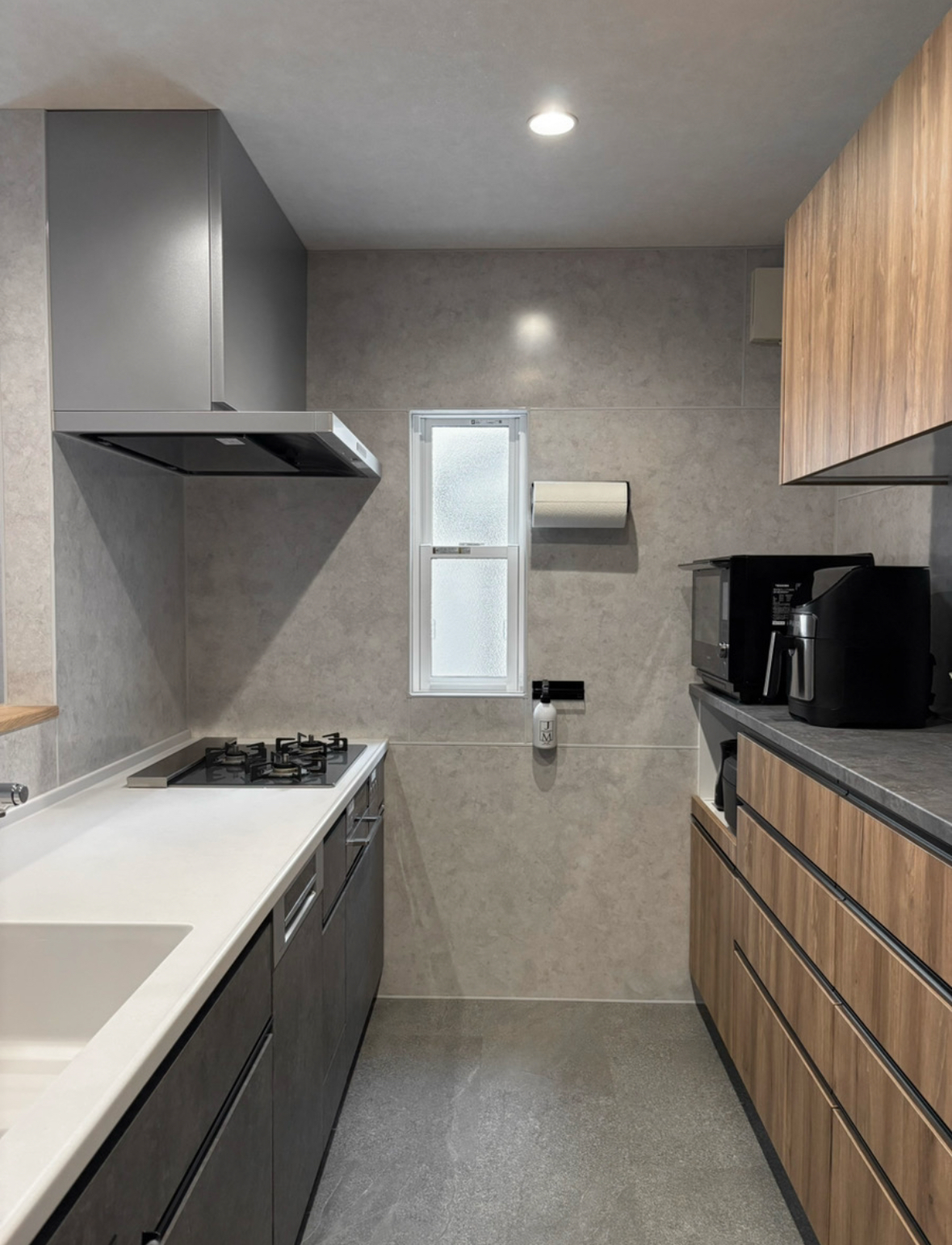 奥さまのプロデュースから始まった今回のリフォーム。 キッチンをはじめ、お部屋の細部にいたるまで、丁寧なご相談を重ねながら進めていきました。 お子さまの朝のルーティンに合わせたマグネット収納の工夫や、ニッチカウンターをカットしてピアノの位置を調整するなど、小さな工夫の積み重ねで、お部屋の使い勝手がぐんと向上しました。 また、使わなくなっていた勝手口を窓に変更するという大きな決断も、快適な暮らしへとつながるポイントになりました。 個室のようになっていたキッチンは、垂れ壁と吊り戸を撤去してオープンな空間へ。家族のコミュニケーションが自然と生まれ、お部屋全体に一体感が生まれました。 オープンキッチンは「立ちたくなるキッチン」に。 お子さまも一緒にお料理を楽しめるようになり、家族の時間がより豊かになりました。 さらに、寒さや防犯面で気になっていた浴室の窓は思い切って塞ぎ、温かく安心できる空間に。タカラスタンダードの浴室はお手入れが簡単で、清潔さが長く続くため、窓がなくても快適に過ごせます。ご家族の毎日の思いや動きが全て詰まったリフォームとなりました。