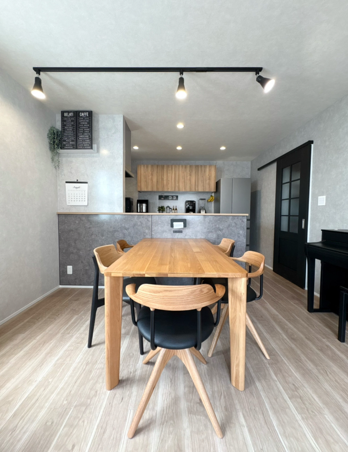 ご夫婦と三人のお子さまが暮らすお住まい。 年の違うお子さまたちは、それぞれにリビングでの過ごし方が異なります。宿題をしたり、ピアノを弾いたり、パパママに一日の出来事をお話ししたりと、三人三様の時間が流れています。 家族みんなが快適に過ごせるように―― ご夫婦は、家族の時間と個々の時間のどちらも大切にできるLDKを目指して、力を合わせて計画されました。 お住まいには、ご夫婦の“お家愛”があふれています。 温かみのある木調の壁紙やタイルカーペットをはじめ、お子さまが心地よく過ごせるよう工夫がいっぱい。DIYでの細やかな工夫にもご家族の想いが感じられます。 今回は、奥さまのプロデュースを中心に、施工を弊社にお任せいただきました。 ご家族の想いが形になった、ぬくもりある住まいです。